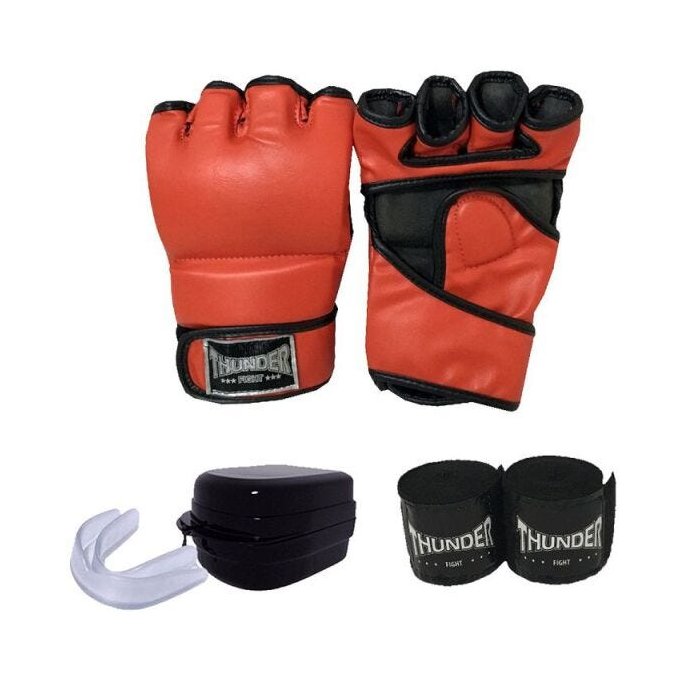 Kit profissional de Mma / Vale Tudo / Ufc / Krav Maga / Hapkido - LUVA MMA + BANDAGEM + PROTETOR