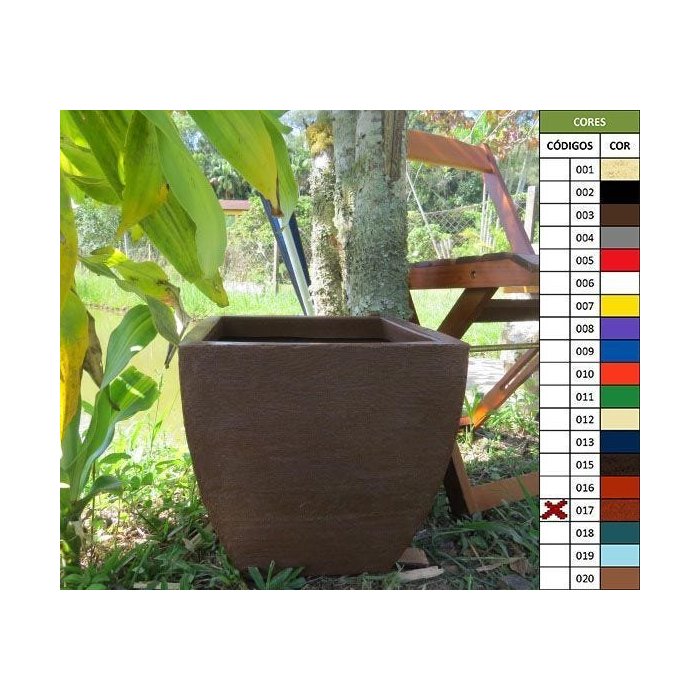 Vaso + Argila + Terra Adubada Moderno Trapézio 30x30x30 Dimensões aprox.: Altura: 30 cm Larg.: 30 cm Compr.: 30 cm Peso: 1 kg Volume: 17 litros Material: Polietileno Textura: Estilo Grafiato Materiais Inclusos: 1 Vaso de Polietileno 5 kg - Terra Adubada Pronta Para Plantar 2 kg - Argila Expandida Brinde Manta Bidim Material de Ótima Qualidade, Resistente ao Sol e Chuva. Resistente a Impactos, Extremamente Durável. Suporta Umidade, Maresias, Poeiras, não Prolifera Fungos e Bactérias. Higiênico, pode ser Lavado e não Descasca por não haver Tinta. Vaso Lindo com Ótimo Trabalho de Acabamento e Design. Obs.: Anúncio refere-se somente ao vaso, não estão inclusos demais itens e fotos meramente ilustrativas.