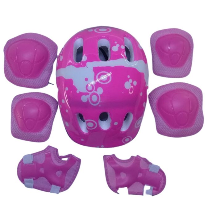 Especificações:Kit de proteção InfantilContém:1 Capacete1 Par de Joelheiras1 Par de Cotoveleiras1 Par de MunhequeiraTamanho Capacete 48-52cm ajustável (Tamanho único)Geralmente servindo em crianças de 5 a 10 anos.Produto Importado.