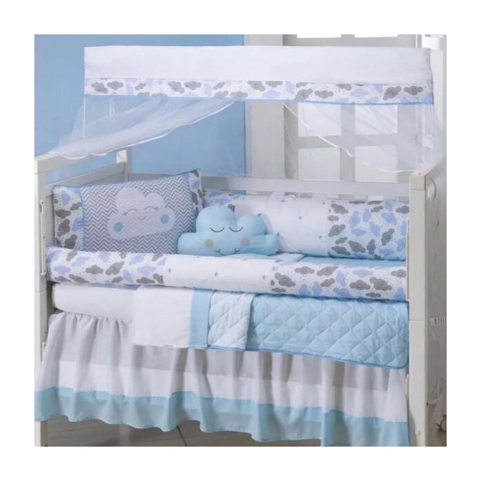 Kit Protetor Berço Americano Menino 10 Peças Nuvem Azul Bebê