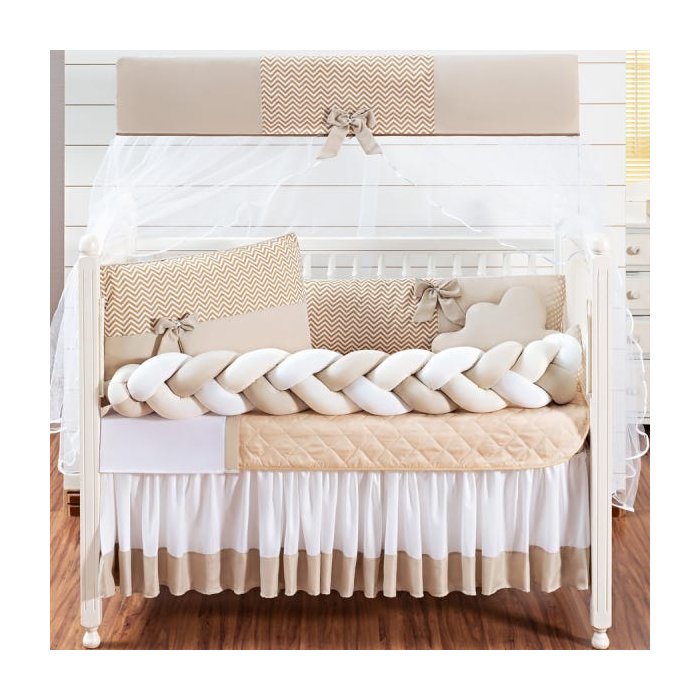 Kit Protetor Berço Americano Trançado Menino e Menina Laço Doce de Bebê Bege 12 peças LANÇAMENTO
