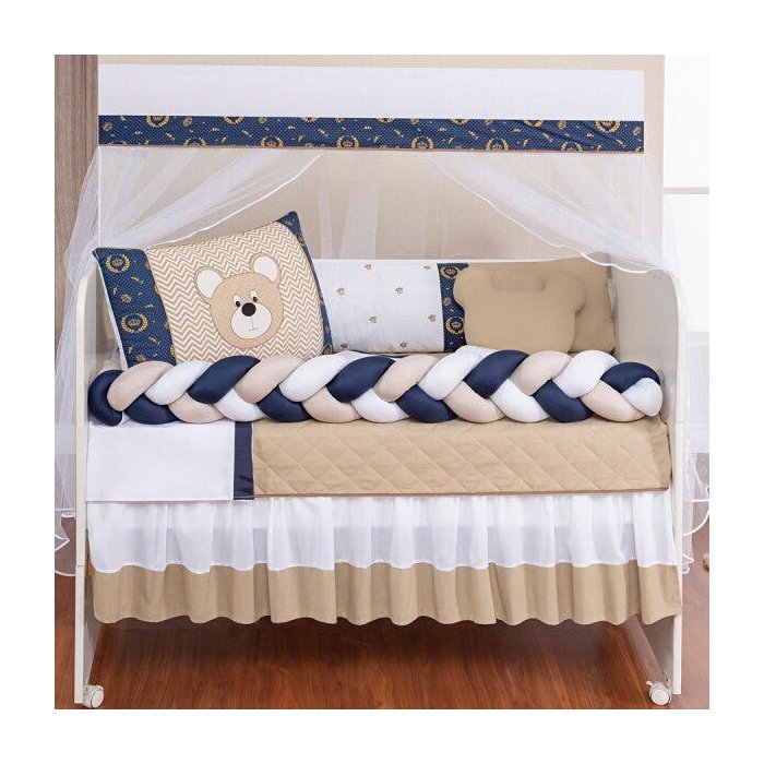Kit Protetor Berço Trança Urso Baby Bege 12 Peças