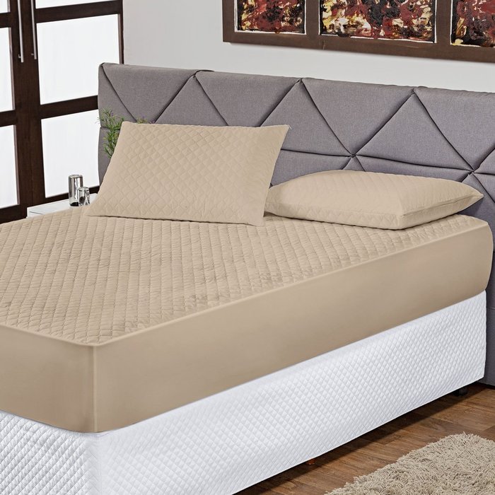 Kit Protetor de Colchão King Impermeável 3 Peças Antiácaro 100% Poliéster Capa para Cama Cáqui