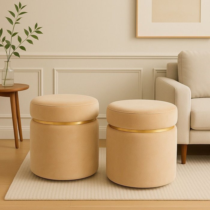 O Kit 2 Puffs Cinta Dourada SUPERIOR Let Móveis