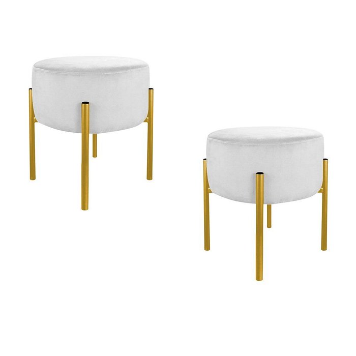 Kit Puff Luxo Base Metálica Dourada Suede Branco - Vallisa Decor