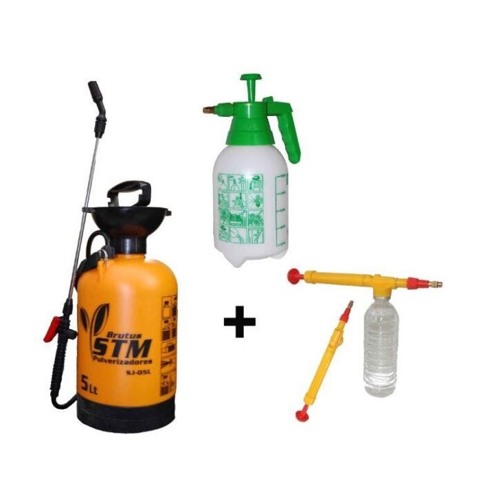 Kit Pulverizador Manual Bomba Veneno 5 e 1,5 litros + PetSpray Composição do Kit: 01 - Pulverizador 5 litros 01 - Pulverizador 1.5 litros 01 PetSpray - Pulverizador Adaptavel em qualquer Garrafa Pet Ideal para aplicação de inseticidas, fungicidas, soluções naturais, adubo foliar e também para a umidificação de plantas - Corpo em plástico de alta resistência - Ponta de pulverização regulável - Gatilho de acionamento com trava - Bico pulverizador regulável em cobre (1,5 litros - PetSpray)