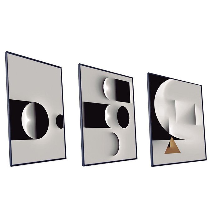 Kit Quadro Abstrato Preto E Branco Canvas Com Vidro Tamanho/moldura 20x30 Caixa Cor Preta
