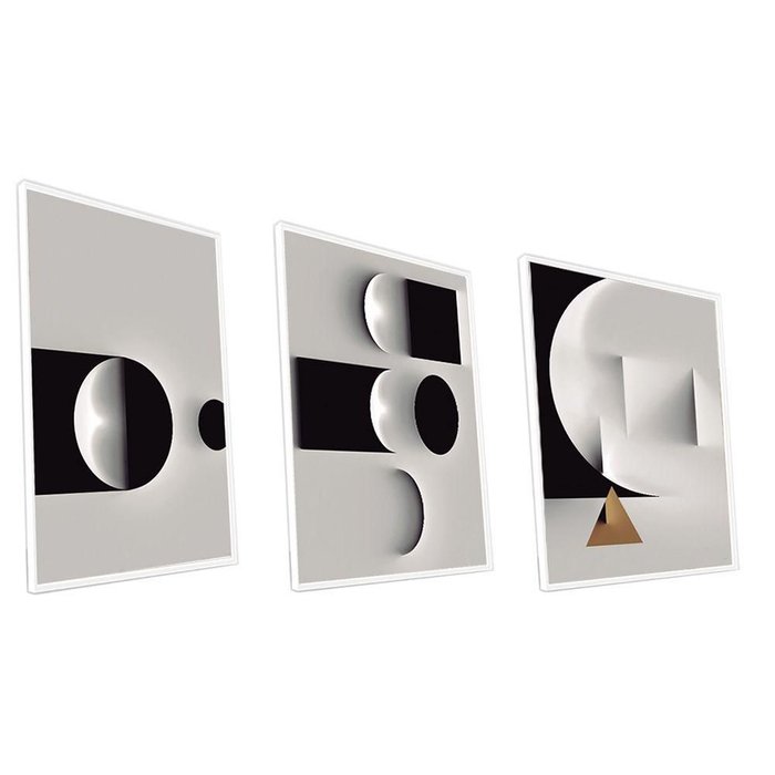 Kit Quadro Abstrato Preto e Branco Vinil com Vidro Tamanho-moldura 90x60 Caixa Cor Branca