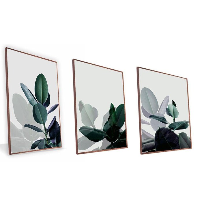 Kit Quadro Folhagens e Sombras Canvas sem Vidro Tamanho-moldura 20x30 Filete Cor Madeira