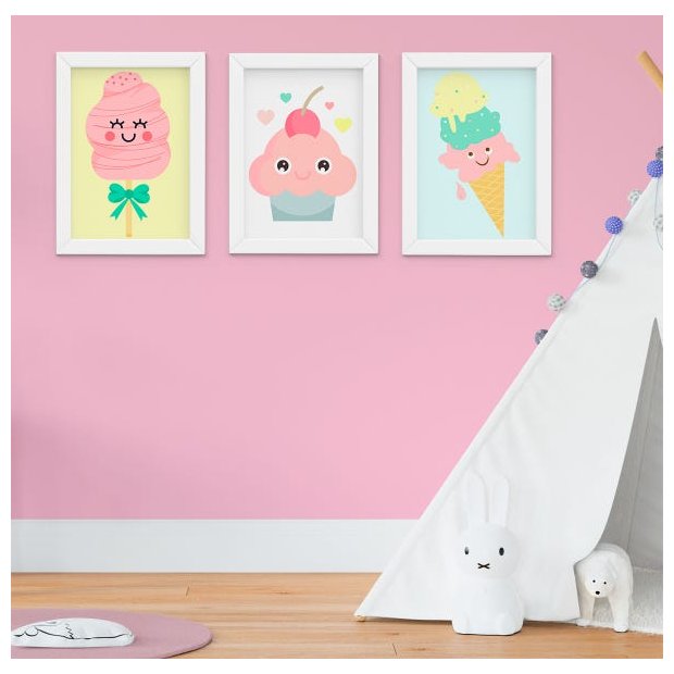 Kit Quadro Infantil Bebê Menina Doces Sorvete Cupcake 3 Peças