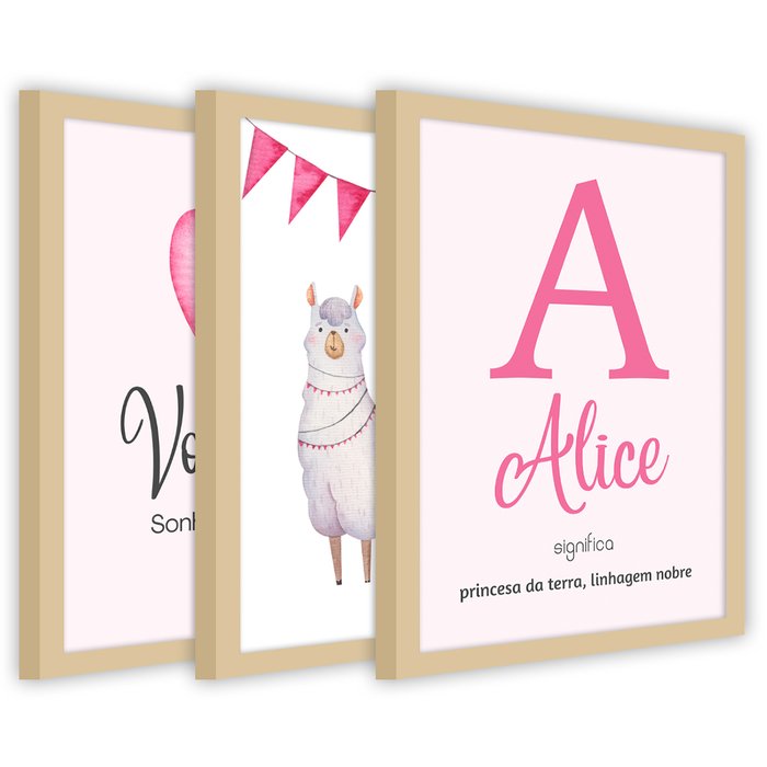 Kit Quadro Infantil Envie o Nome16 20x30 3 Pçs Arte na Arte Quadro Infantil