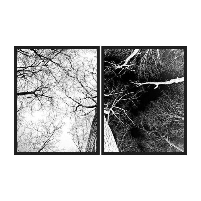 Kit Quadros em Preto e Branco Árvore Seca Positivo Negativo Kit com 2 Quadros de 55x70cm
