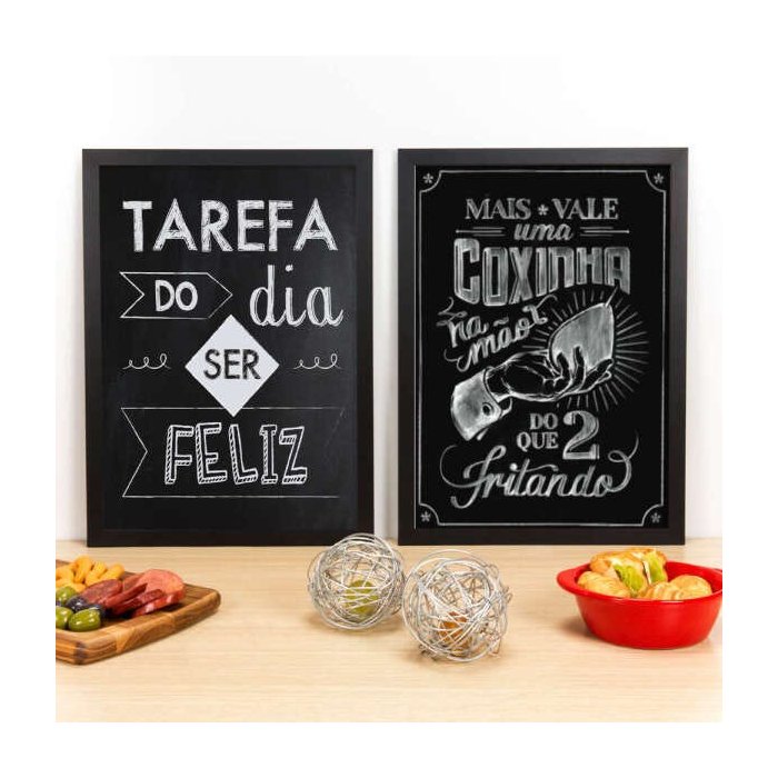 Kit Quadros Tarefa do Dia + Coxinha na Mão - 45x33 cm Preto