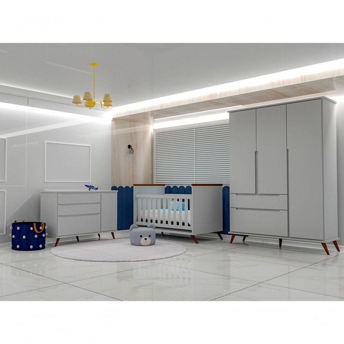 A hora de decorar o quarto do Bebê é um dos momentos mais esperados para o Papai e a Mamãe, não é? Pensando nisso, separamos essa linda oferta de móveis para o quarto do seu Bebê! São Móveis com design Retrô de excelente qualidade, funcionais e que trazem muita sofisticação e personalidade para o ambiente. Com a estrutura 100% MDF, garante a durabilidade do móvel e conta com acabamento lindíssimo. Garanta agora mesmo esse móvel e decore o quarto do seu Bebê com muito estilo! O Guarda-Roupa Retrô Melinda conta com 03 portas e 02 gavetas, proporcionando muito espaço para guardar todos os itens do bebê! Desenhado em estilo retrô, este roupeiro conta com puxadores “cava”, pés em madeira maciça, estrutura em MDF, gavetas com corrediças telescópicas e pintura atóxica, tudo para garantir qualidade, segurança e sofisticação. Você vai se apaixonar! Dimensões do Guarda-Roupas: Altura: 205cm x Largura: 133cm x Profundidade: 46cm; A Cômoda Retrô Melinda conta com 03 gavetas e 01 porta, proporcionando funcionalidade e espaço de sobra para armazenar tudo o que você precisa para o seu bebê! Desenhada em estilo retrô, esta cômoda conta com puxadores “cava”, pés em madeira maciça, estrutura em MDF, gavetas com corrediças telescópicas e pintura atóxica. Não deixe de conferir! Dimensões da Cômoda: Altura: 91cm x Largura: 113cm x Profundidade: 46cm; O Berço Mini Cama Retrô Ana conta com design moderno, que vai proporcionar para você beleza, conforto e uma boa noite de sono ao seu filho e tudo isso aliado à segurança do bebê; afinal é produzido em madeira de alta qualidade, sendo MDF de 15 mm na cabeceira e MDF 25mm nas grades. Ah, e as qualidades não param por aqui, pois esse berço ainda possui pintura laqueada esmalte PU, atóxica e sem cheiro para garantir o bem-estar do seu bem mais precioso. Adquira o seu! Dimensões do Berço:(Altura x Largura x Profundidade): 92 A x 136 C x 78 L cm. Diferenciais:- MDF.- Pés Palito madeira de reflorestamento- Berço Mini Cama 3x1- Base de ferro nos Pés- Pintura Laqueada- Transforma em mini cama montessoriana e Sofá- Certificado pelo INMETRO (005597/2021) Observações importantes: O PRODUTO NÃO ACOMPANHA O COLCHÃO. As imagens do anúncio são meramente ilustrativas. A cor dos produtos pode sofrer variações. Nossa loja não se responsabiliza pela montagem ou desmontagem dos produtos e estes serviços não estão inclusos nos valores dos mesmos. Para evitar imprevistos na sua entrega, confira as dimensões do produto no momento da sua compra. No momento da entrega, se verificar que a embalagem está avariada recuse o recebimento e nos informe para que sejam adotadas as providências necessárias. As imagens são meramente ilustrativas. Acessórios decorativos do ambiente não acompanham o produto.