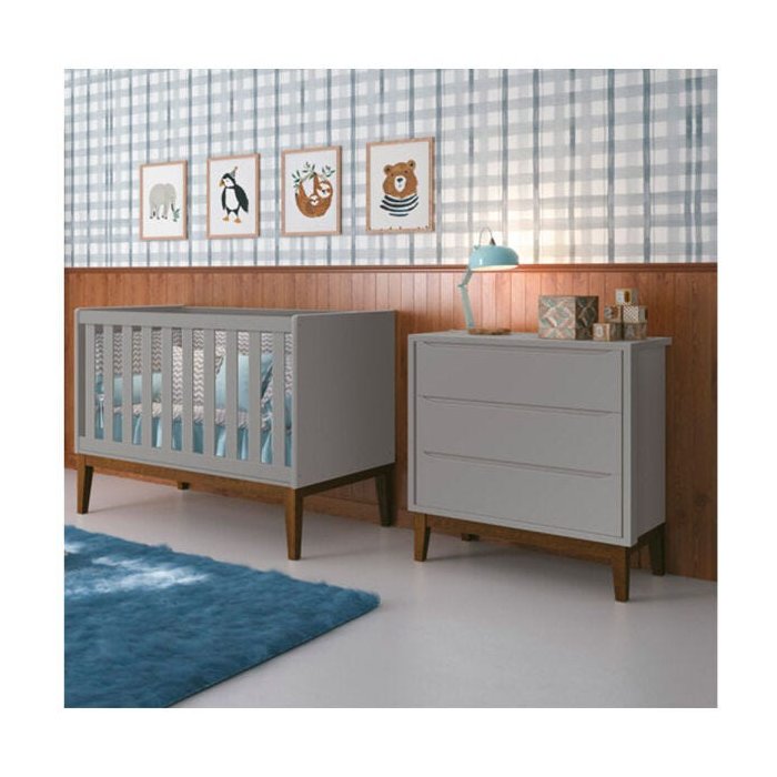 O Kit Quarto Infantil Square é a solução ideal para montar o quartinho do seu bebê com beleza e qualidade. Composto por um berço padrão americano que se transforma em mini cama e uma cômoda sem porta, o kit além de combinar com qualquer decoração, ainda facilita seu dia-a-dia oferecendo uma maior organização das roupinhas e brinquedos da criança. O Kit Quarto Infantil Contém: 1 Berço Mini Cama Square - Cinza Fosco 1 Cômoda Square - Cinza Fosco O Berço Retrô Square Cinza com Pés em Madeira foi criado pensando no desenvolvimento do bebê. Sua estrutura foi desenhada para acompanhar os pequenos durante os anos, se transformando em mini cama. O berço possui padrão americano, estrado em MDF e grades fixas, e pés de madeira. Os pés palito de madeira acrescentam um toque moderno à decoração do quarto de bebê, enquanto o acabamento rosa fosco, feito com camadas de verniz atóxico (UV), proporciona durabilidade e beleza ao produto. Tudo isso para proporcionar maior conforto e noites de sono tranquilas. Características Principais - Berço Mini Cama Square: Transforma-se em mini cama; Padrão Americano; Cantos arredondados; 3 regulagens de altura do estrado; 1º regulagem de altura: 32cm / 2º regulagem: 50cm / 3º regulagem: 63cm; Estrado em MDF; Grade Fixa; Pés em madeira; Acabamento UV (Atóxico); Espaçamento da grade: 5,9 cm; Certificado pelo INMETRO; Peso da Berço: 52,5kg; Peso Suportado: 30kg; Dimensões: Altura: 97cm | Profundidade: 76cm| Comprimento: 135cm; Colchão Recomendado Medidas: 130cm x 70cm x 12cm / Densidade: D18. A Cômoda Retrô Square combina beleza e qualidade, com seu design vintage torna o quartinho do bebê ainda mais acolhedor. Perfeita para os pais que buscam uma decoração mais clássica Características Principais - Cômoda Square: 3 Gavetas; Sem porta; Corrediças Telescópicas; Cabideiro Metálico; Maior Organização e Praticidade; Puxadores embutido; Pés e molduras em Madeira; Peso da Cômoda: 32,20kg; Acabamento UV (Atóxico); Peso suportado: 8 kg por gaveta - 15 kg sobre o tampo. Total: 39 kg; Dimensões: Altura: 86cm | Profundidade: 41cm | Comprimento: 97cm. Materiais: MDF: Painel de fibras de madeira de composição homogênea que garante resistência, excelente acabamento, além de não ser afetado pela variação de temperatura. Acabamento UV: Através do processo de impressão com tinta UV, a tinta recebe uma radiação de luz UV, que com a ajuda de processo químico garanta uma rápida secagem, solidificação e polimerização da tinta no suporte, o que ainda garante cores consistentes em qualquer tipo de suporte. Densidade D18: Quanto maior a densidade da espuma, maior o peso suportado pela mesma. Esta densidade D18 é ideal para projetos como sofá de estar e móveis de uso diário, conferindo sensação de maciez e conforto. Sobre a Marca: Empresa familiar e tradicional no ramo moveleiro, iniciou suas atividades em 1985 fabricando móveis residenciais convencionais. Em 06 de Outubro de 2008, após reestruturações internas e mudança no foco de mercado, nasceu a RELLER, que passou a produzir exclusivamente berços e móveis infantis. Limpeza e Cuidados Usar pano úmido. Não usar lustra móvel.