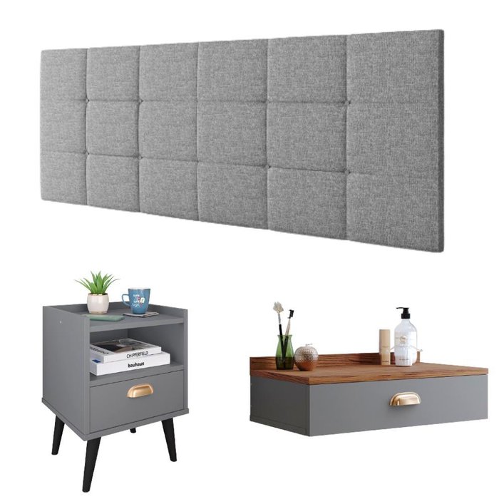 Kit Quarto Penteadeira Suspensa Gloss Mesinha Estilo Cinza|Freijó Cabeceira Bia 1.40 Cinza Linho Cinza