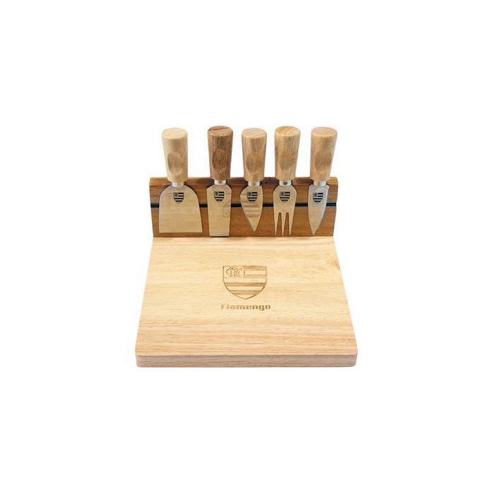 Para os amantes de futebol, unir a paixão pelo time com a cozinha é mais uma prova de torcida leal! Assim, este kit vem com todos os utensílios necessários para o corte de petiscos, para cervejas/?fq=C:4373/6348/" >degustar e servir os amigos enquanto acompanham uma partida, pois é composto por cinco peças em metal e madeira mais uma tábua, que são personalizadas com o brasão do time.