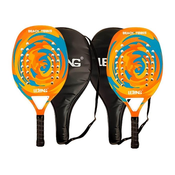 Kit Raquete Lelong Beach Tennis Fibra De Carbono 2 Unidades Para entreter todas as idades na praia ou no campo, o Beach Tennis é uma ótima opção. Além de ser um esporte muito divertido, é também super saudável e vai colocar todos pra jogar. A Raquete de Beach é o que faltava para a sua melhor performance na prática do Beach Tennis. Foi desenvolvida para proporcionar potência sem perder o controle da bolinha. Possui também um tratamento áspero que proporciona ótimos efeitos e alcances e em um único golpe. Feita de um material super resistente e leve. Além de acompanhar bolsas para transporte. Informações Técnicas:Material: fibra de carbono + fibra de vidro Cabo Emborrachado Design leve e resistente faz o grande diferencial para jogadores. Acompanha bolsas de transporteItens Inclusos:2x Raquetes Beach Tennis Fibra de Carbono 2x Bolsa para transporte