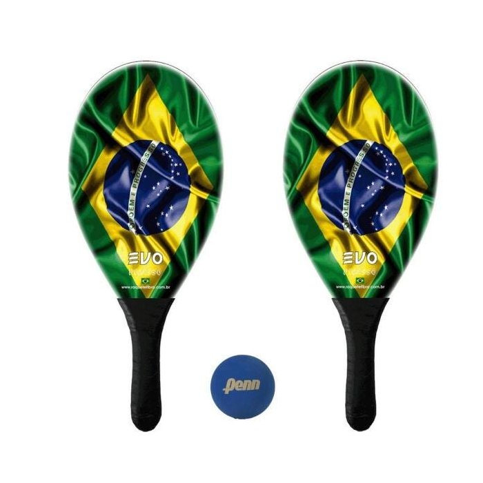 Kit Raquetes Frescobol Evo Fibra Vidro Brasil com Bola Penn