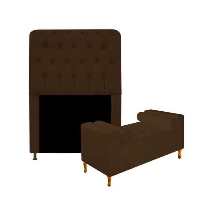 Kit Recamier Sofá Calçadeira Divã Félix 100cm e Cabeceira Estofada Lady 100cm para Cama Box Soltei Marrom