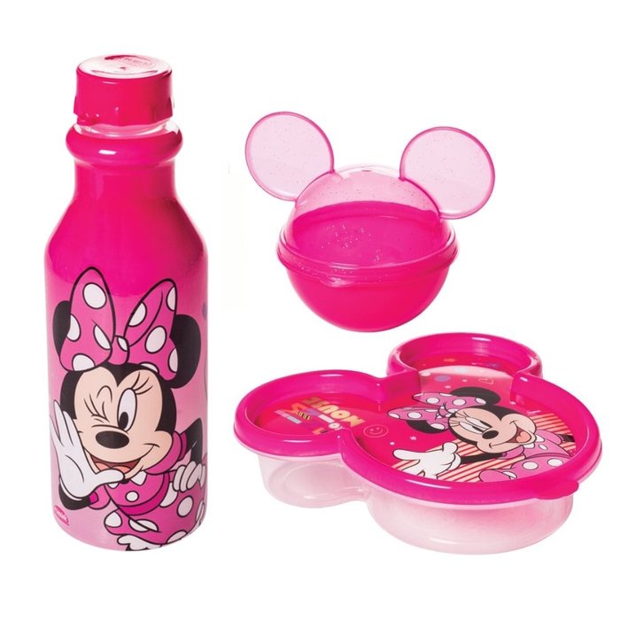 Kit Refeição Minnie Garrafinha Retrô 500ml e Potes Minnie Rosa - Plasútil