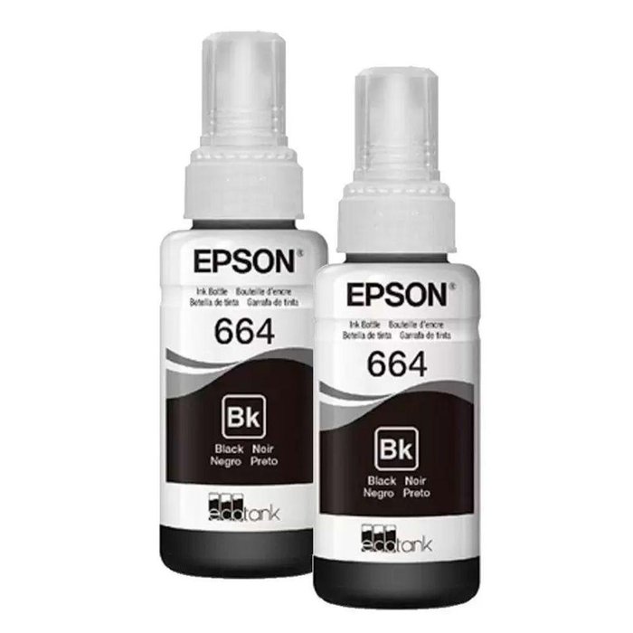 Kit Refil De Tinta Epson 664, Preto, 70ml - T664120-2p