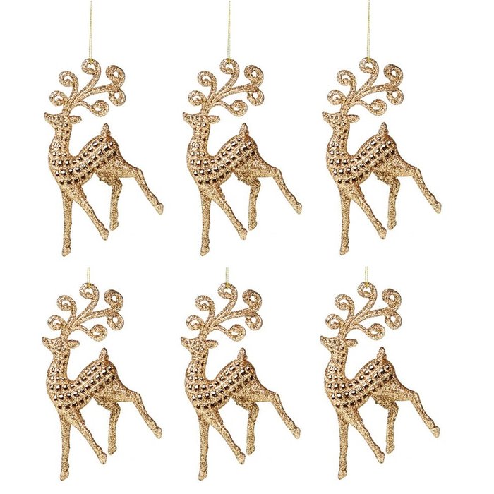 Kit Rena Elegante Natal Gliter Dourado Pendente 13cm 6 Peças Enfeite Árvore - Master Christmas