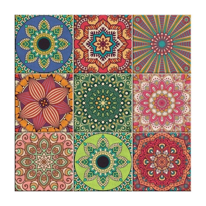 Kit Revestimento de Parede em Cerâmica Mandala 9 Peças Isabela Revestimentos Colorido