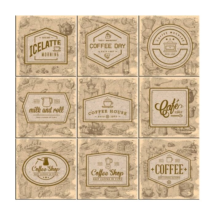 Kit Revestimento de Parede em Cerâmica Retro Coffee 9 Peças Isabela Revestimentos Retro Coffee