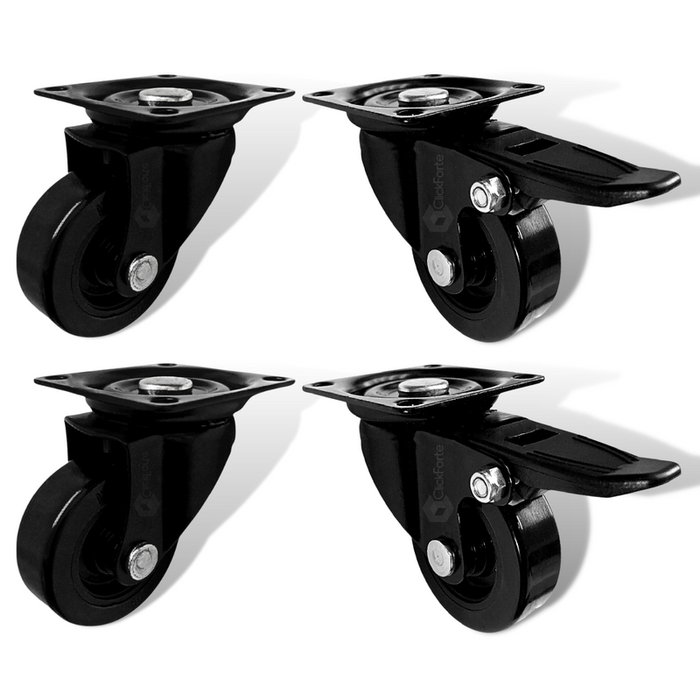 Kit Rodízio 2 S/ Trava + 2 C/ Trava Rodinha Black Giratório Silicone Móveis