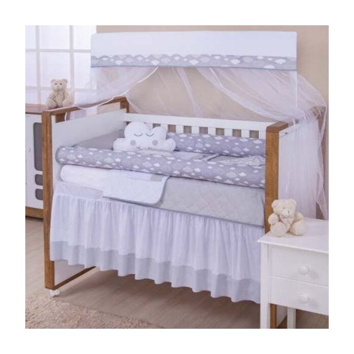Kit Rolinho Para Berço Americano 11pçs Nuvem -Cinza