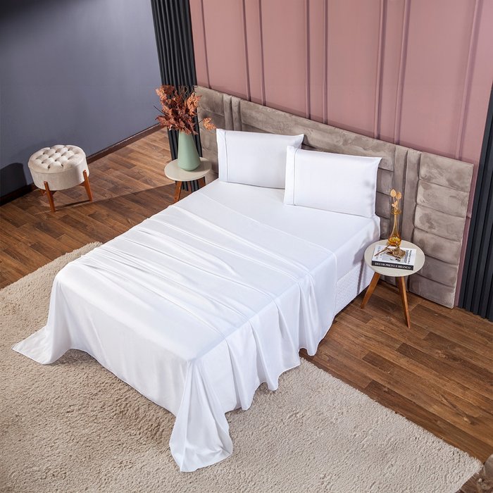 Kit Roupa de Cama Casal 4 Peças 400 Fios Toque Suave Cor:branco branco