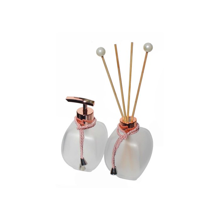 Kit Saboneteira Difusor Vidro 300ML Válvula Luxo Pia Lavabo:Rose Rose