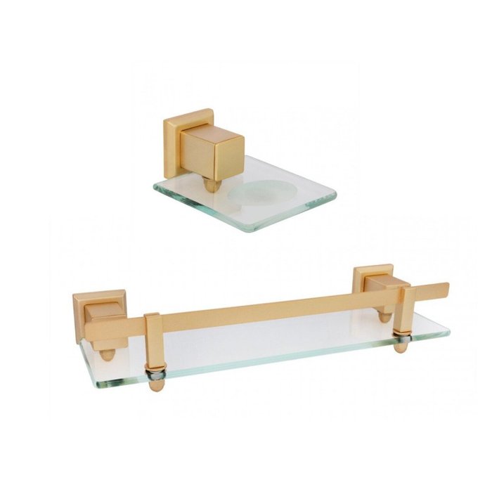Kit Saboneteira e 1 Porta Shampoo com Haste Ducon Metais Ouro Fosco