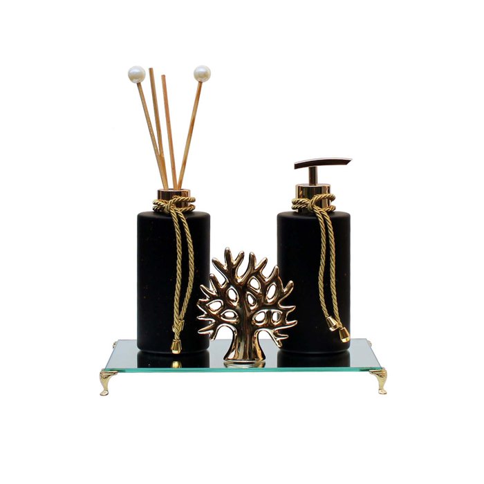 Kit Porta Sabonete e Difusor 450ML + Bandeja + Estátua Mini Árvore da Vida