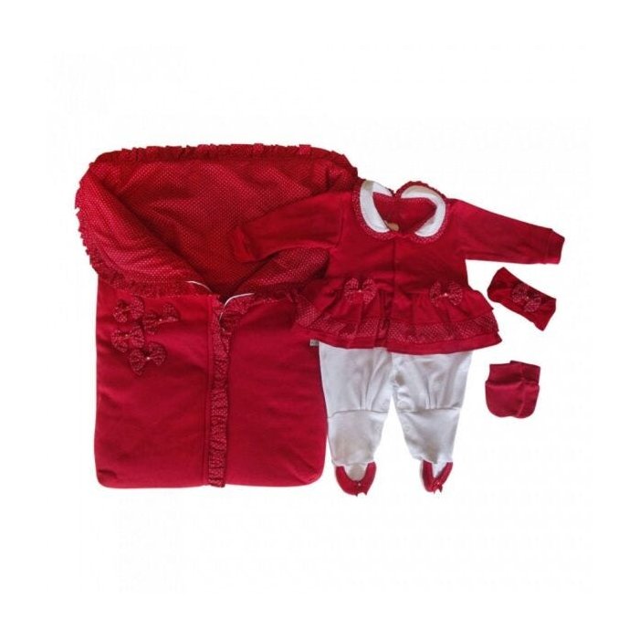 Kit Saída De Maternidade Menina 4 Peças Lacinho Vermelho