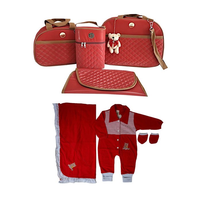 Kit Saída Maternidade Masculina Vermelha + kit Bolsas Caramelo 4 Pç A2