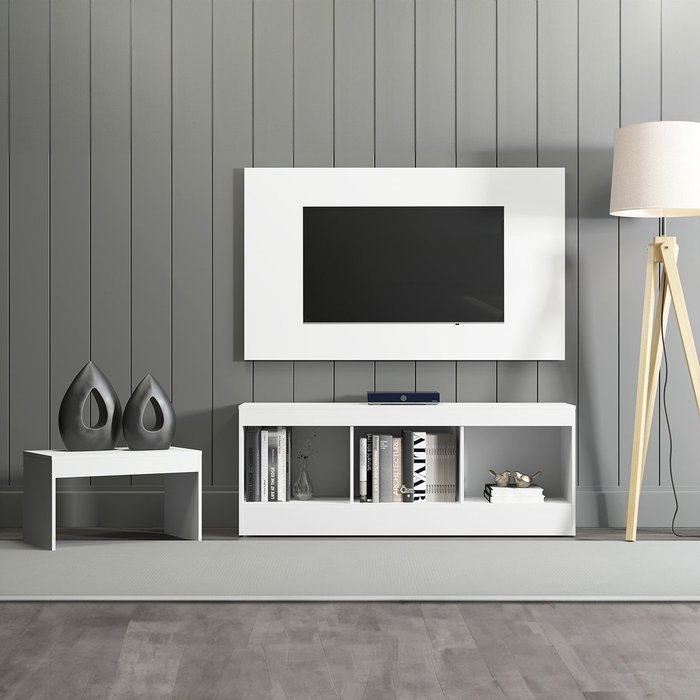 Kit Sala de Estar Orlando Completo Rack com Painel Tv 50" Mesa Mdp Branco Soluzione
