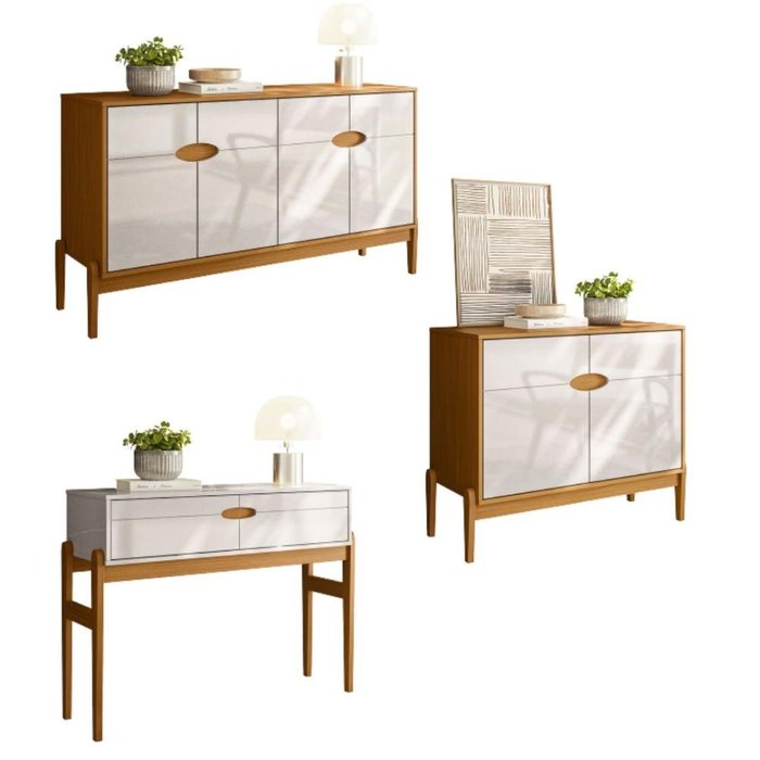 Conjunto Sala de Estar Intense Lojas Movelove é para ambientes como sala de jantar e sala de estar, o conjunto Intense Movelove é o móvel perfeito, é sempre um móvel coringa na hora de ambientar a casa e receber á família e os amigos. Por ser um móvel multifuncional, ele pode ser adaptado em diversos cômodos da casa com cantos arredondados e pés de madeira. Dimensões Do Aparador Intense:Altura 80 cm