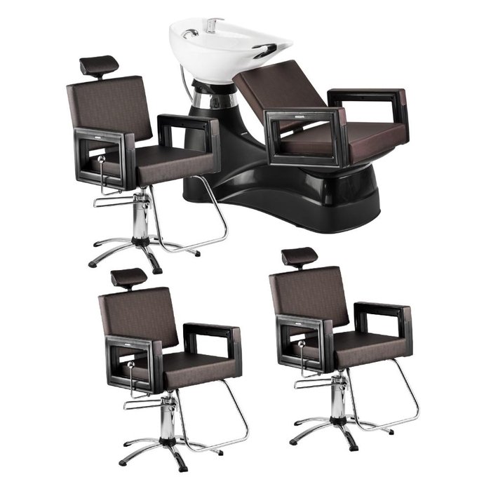 Kit Salão 3 Cadeiras Hidráulicas + Lavatório Cuba Reclinável Dompel Square Preto/marrom