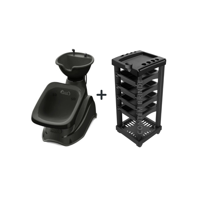 Kit Salão Preto Lavatorio + Carrinho Cabeleireiro + Brinde
