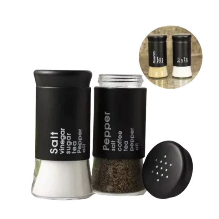 Kit Saleiro e Pimenteiro de Inox com Fundo de Vidro Preto