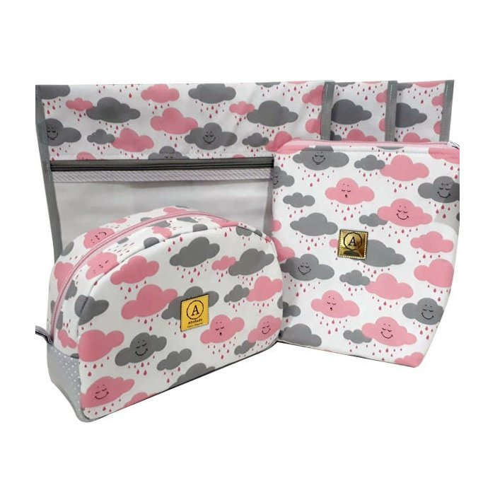 Kit Saquinho Maternidade Nuvem Cinza com Rosa - 5 Peças, sendo: