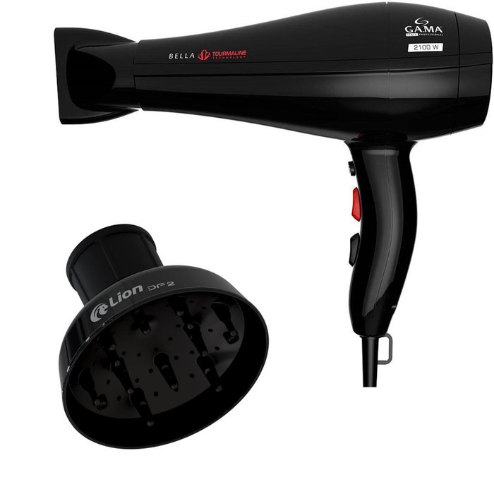 KIT - SECADOR DE CABELO GAMA BELLA TOURMALINE 2100W 220V + DIFUSOR DE AR LION DF2 - PRETO