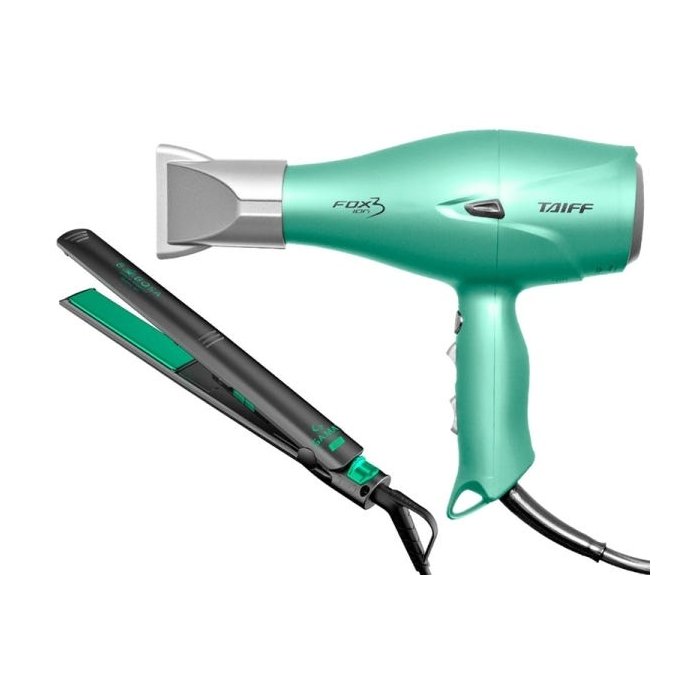 KIT - SECADOR TAIFF FOX ION 3 SOFT GREEN 2200W 127V + PRANCHA GAMA ELEGANCE BABOSA CERAMIC 220°C