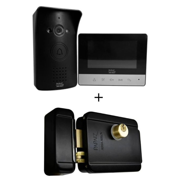 Kit Segurança Papaiz: Vídeo Porteiro Aa-irv4c + Fechadura Elétrica Aa-erl200p Preto