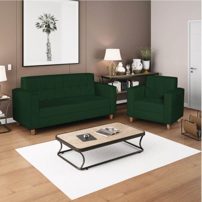 Kit Sofá 180cm e Poltrona em Suede Dallas Verde