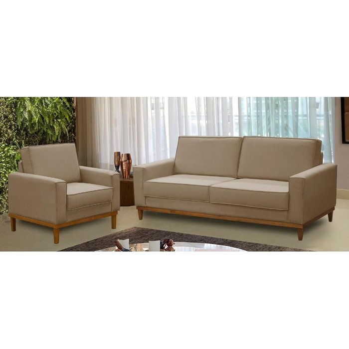 Kit Sofá 2 Lugares 1,80m e Poltrona Living Lavinia Linho Bege Adonai Estofados