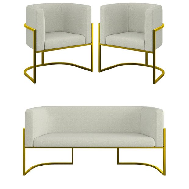 Transforme o seu ambiente com o Kit 2 Poltronas + Sofá 2 Lugares Base de Metal Black Balaqui. Este kit é a combinação perfeita de conforto, durabilidade e um design moderno, ideal para mesas de jantar, áreas de estar e até mesmo ambientes comerciais. Especificações do produtoTecido em BouclêEspuma D-23 com Alta densidadePercintas Elásticas que oferecem suporte adicionalEstrutura de madeira eucalipto proveniente de reflorestamento Informações Técnicas (Produtos lado a lado)Altura: 76 cmLargura: 268 cmProfundidade: 64 cmPeso: 52 kgCapacidade de Suporte da Poltrona e Namoradeira: Suporta até 140 kg e 180 kg Produtos embaladosAltura: 79 cmLargura: 269 cmProfundidade: 69 cmPeso: 52 kg Observações ImportantesO produto tem 3 meses de garantia contra defeitos de fabricaçãoProduto possui uma embalagem segura, feita para evitar danos durante o transporteO Produto é entregue montadoA cor real pode variar ligeiramente devido às configurações da tela e ao tratamento das imagens Perguntas FrequentesComo devo limpar?Realizar a limpeza do tecido com um pano seco ou levemente umedecidoQuantos produtos irei receber nesta compra?Você receberá 3 volumes, ou seja, duas Poltronas e uma Namoradeira Lua. Para mais informações ou assistência com sua compra, nossa equipe está à disposição para ajudar