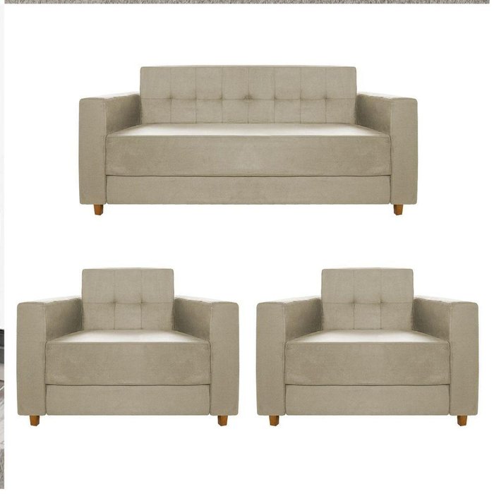 Kit Sofá 2 Lugares E 2 Poltronas Denver Linho - Amarena Móveis Cor Bege